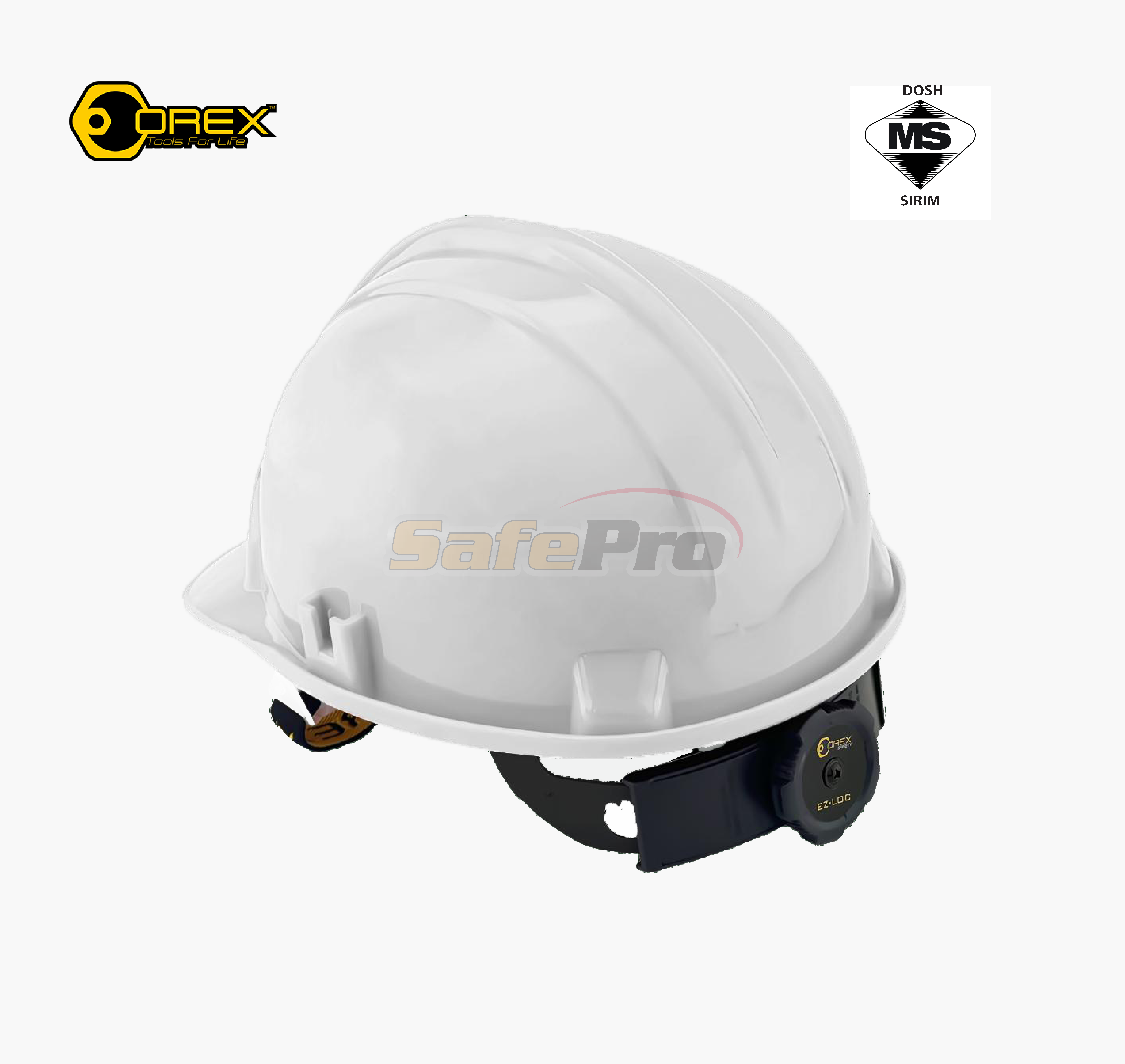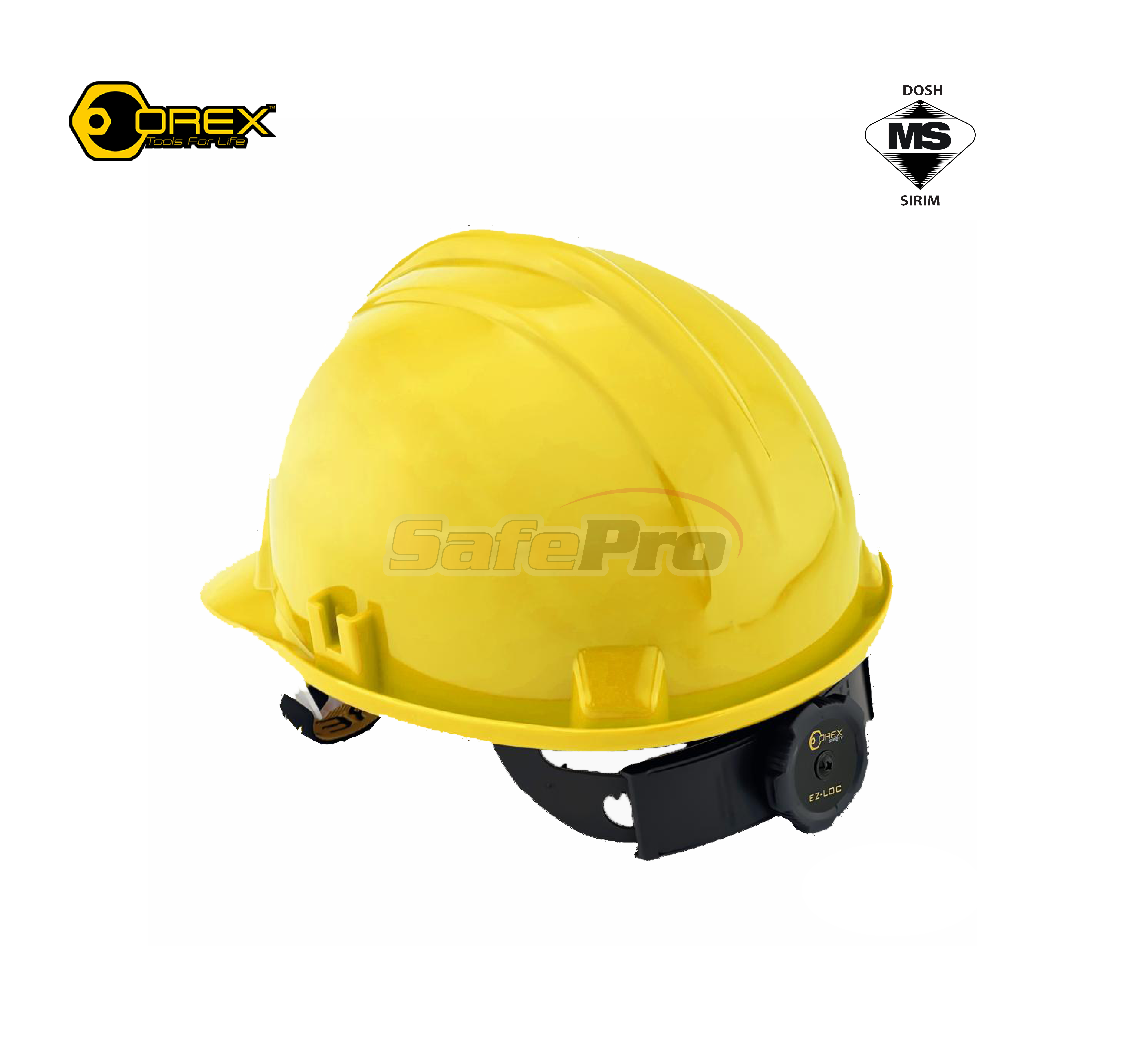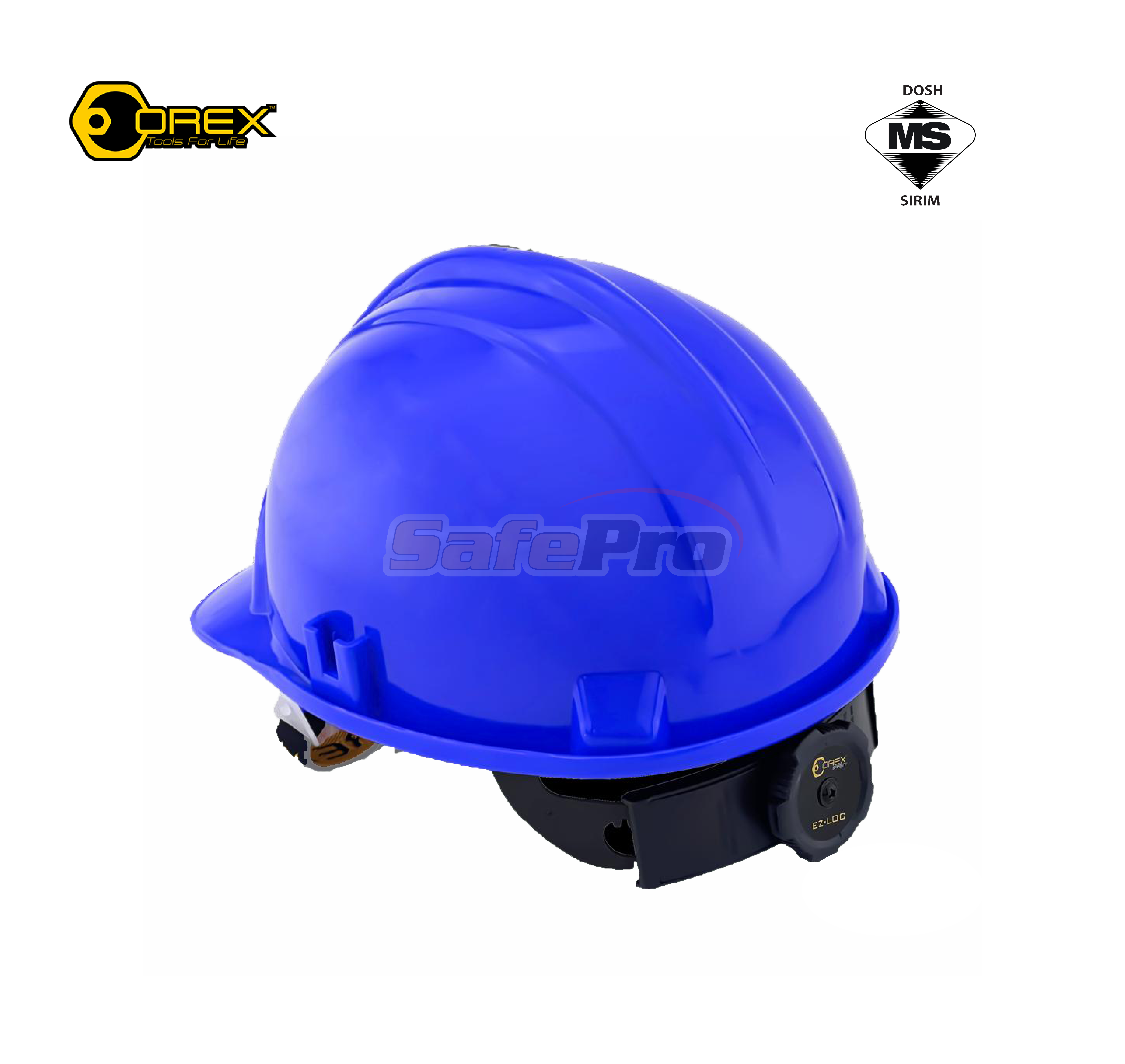 · High-density polyethylene · Ratchet Lock · Plastic Webbing Harness · Elastic Adjustable Chin Strap · Available colour : White , Yellow , Blue , Red , Green · Sirim & Dosh Approved