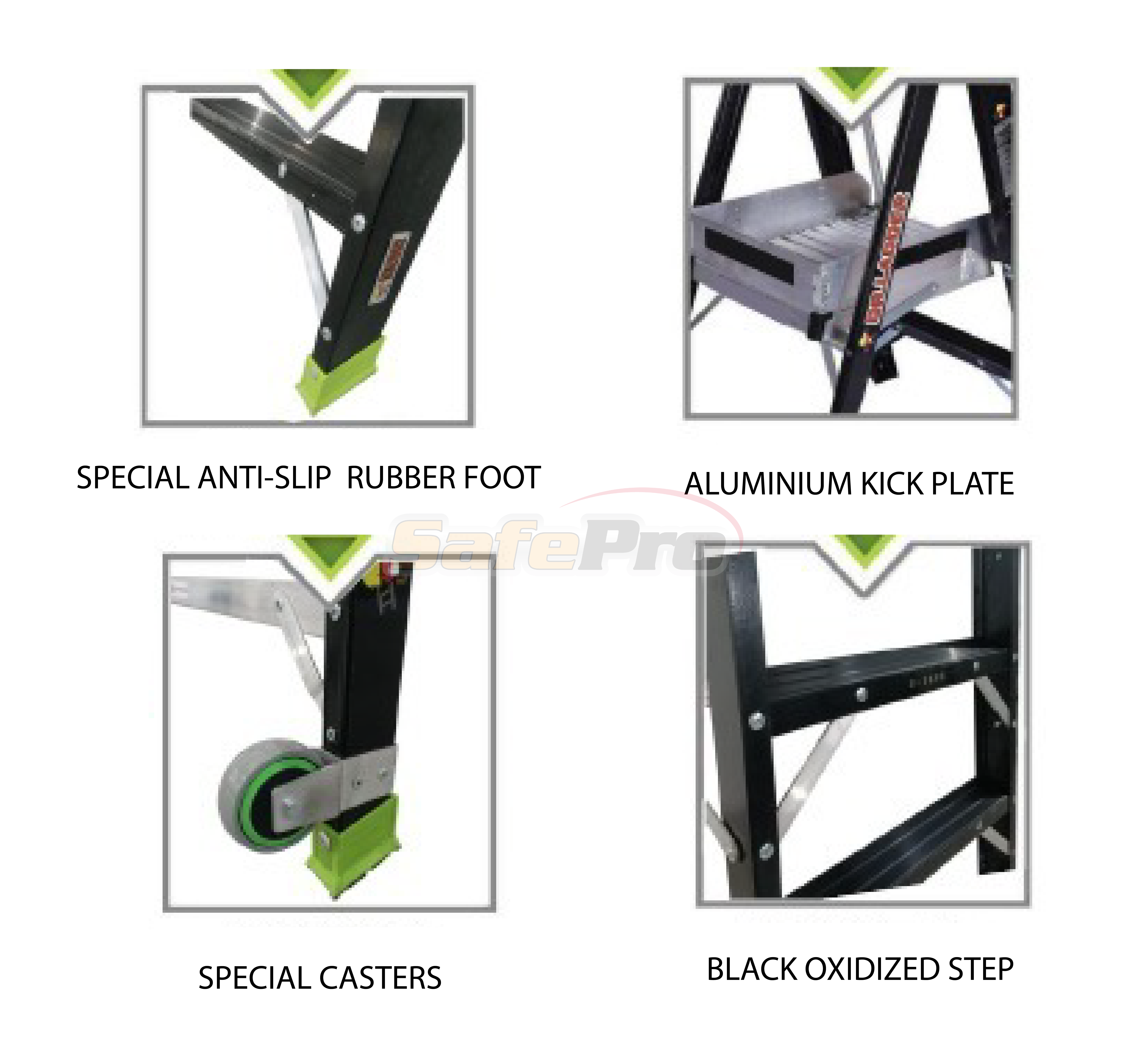 • Heavy-duty fiberglass sides with slip resistant aluminium treads.
